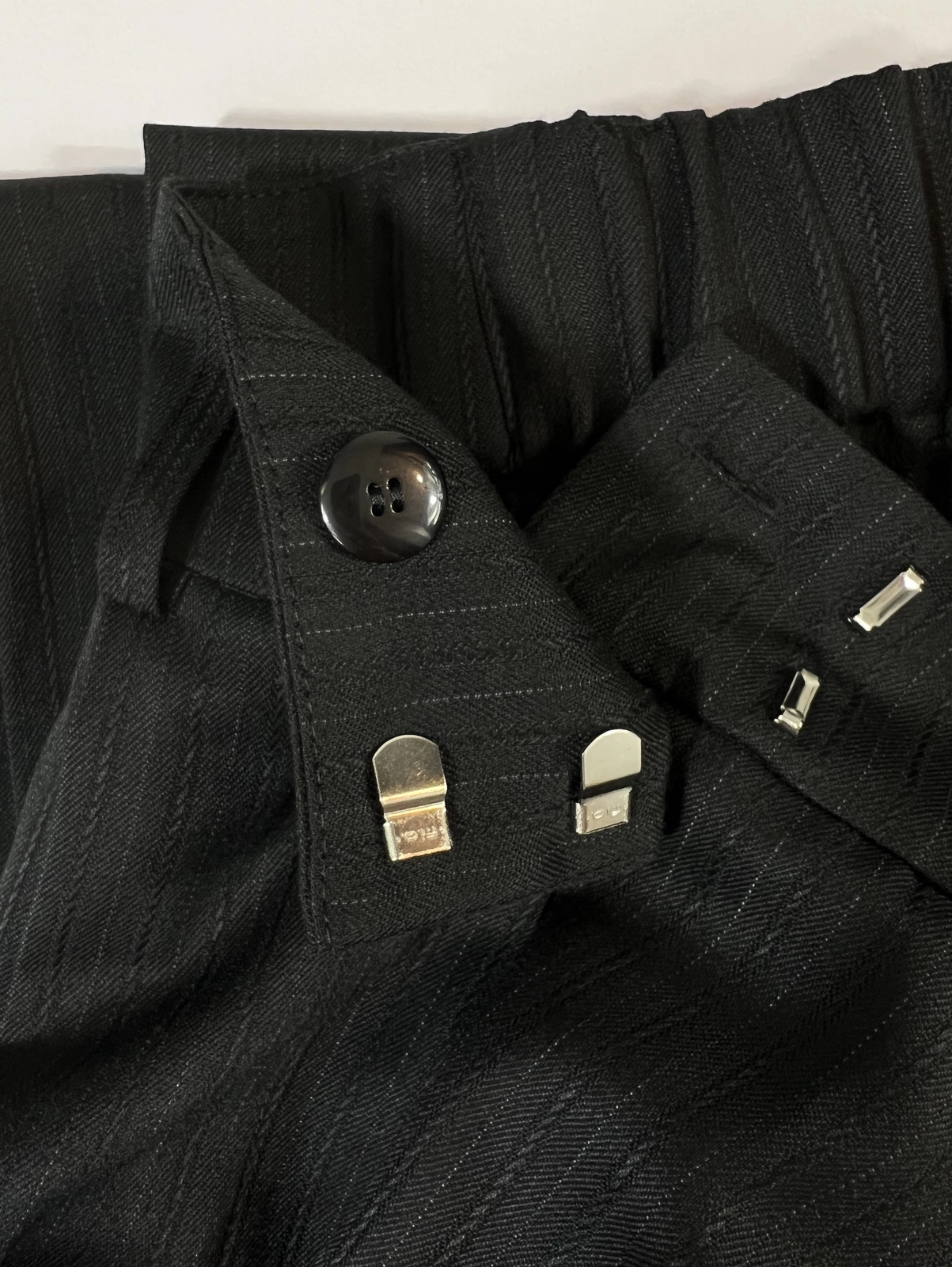 - Hose glatt verarbeitet mit versteckten Haken und Knöpfen auf der Innenseite.