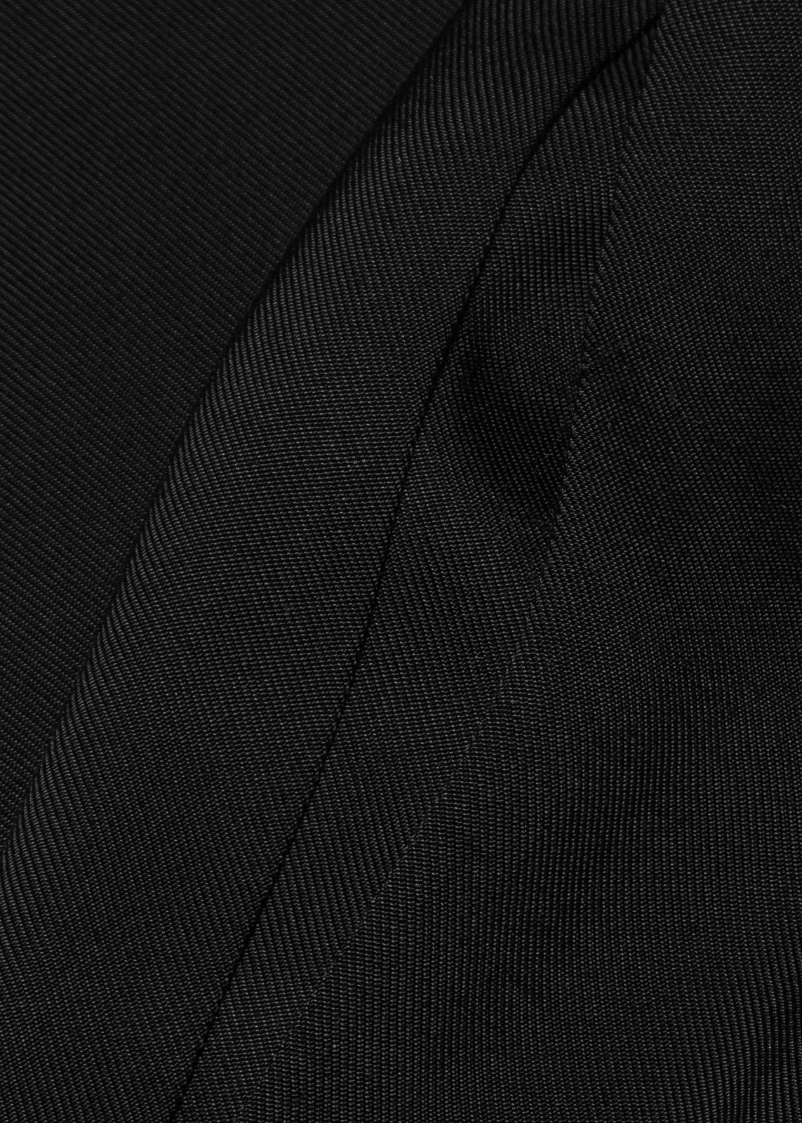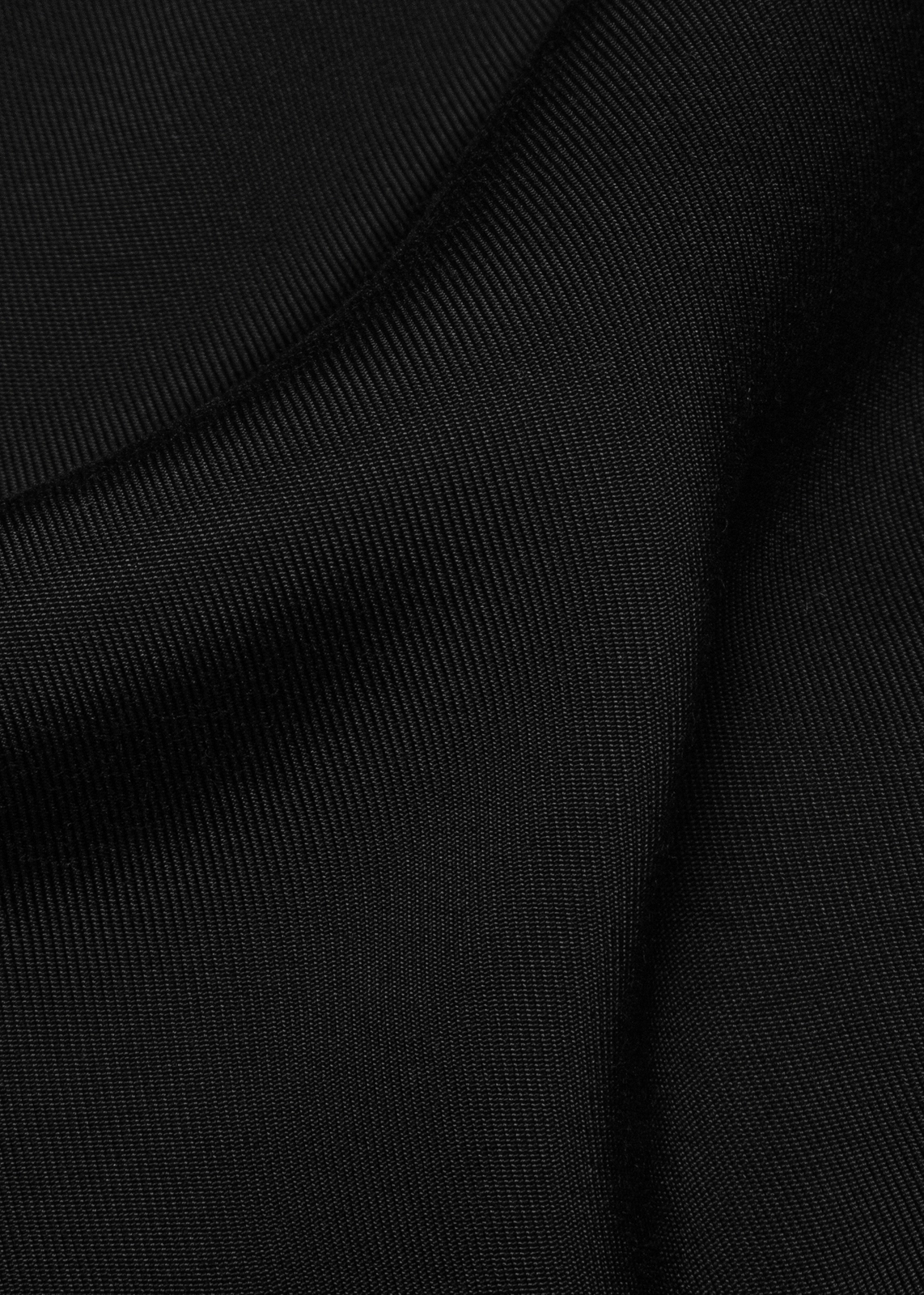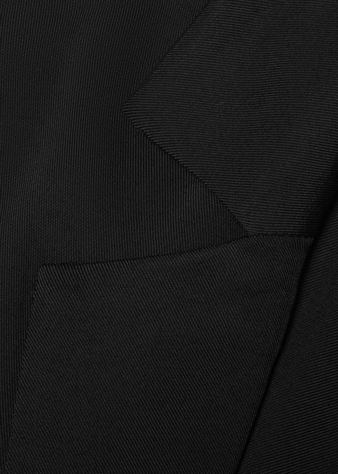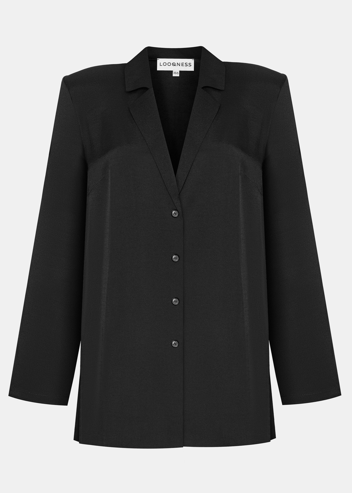 - Auf den Schultern der Bluse sind Polster platziert, die die Schulterpartie betonen.