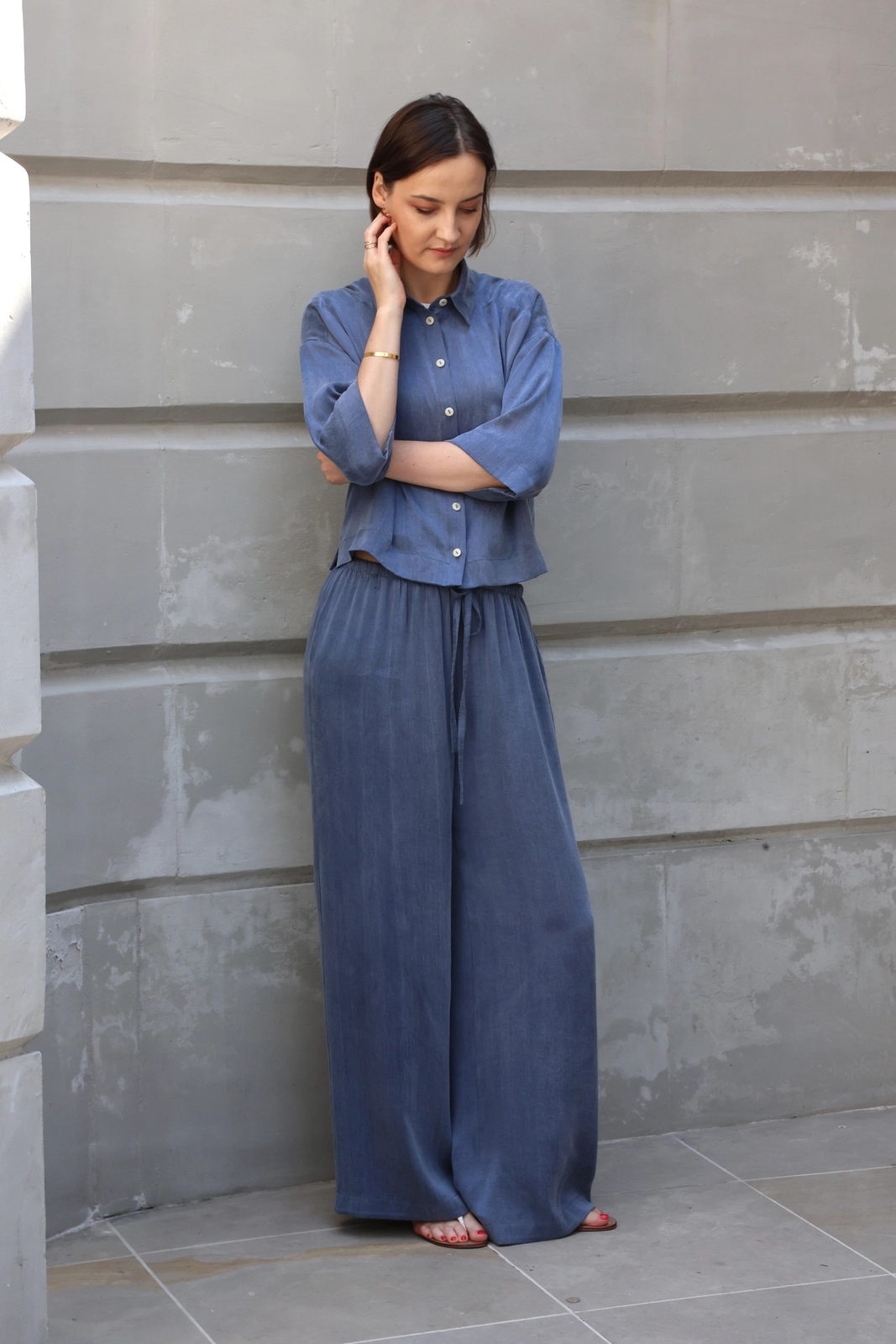 • Bluzka o kroju koszulowym wykonana z certyfikowanej, wysokogatunkowej tkaniny. Krój kubełkowy. Idealnie sprawdzi się w stylizacjach ze spodniami lub spódniczką. Posiada logowane guziki.