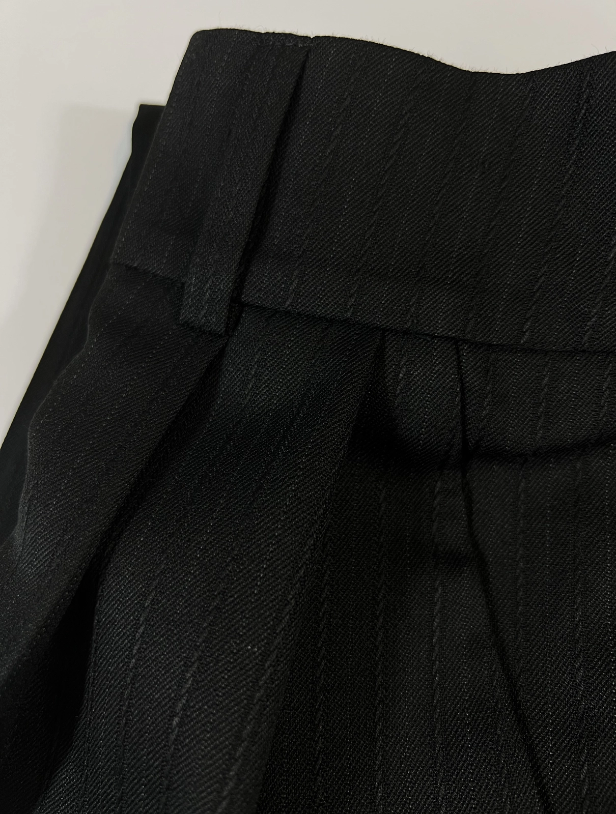 - Spodnie wykończone na gładko. Posiadają ukryte haftki oraz guzik od strony wewnętrznej
